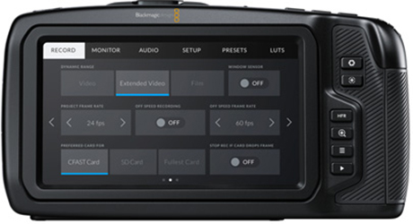 Blackmagic Pocket Cinema Camera 6K имеет сенсор Super 35 под объективы с креплением EF, 13 ступеней динамического диапазона и два базовых значения ISO до 25 600 для съемки в HDR и при слабом освещении. Внешние органы управления обеспечивают быстрый доступ к наиболее важным функциям, а 5-дюймовый сенсорный экран облегчает кадрирование, фокусировку и выбор параметров. Предусмотрены внутренняя запись на карты SD/UHS-II или CFast 2.0 в RAW или ProRes, возможность сохранения на внешний накопитель через порт USB-C, встроенные микрофоны, вход XLR, полноразмерный HDMI-интерфейс, поддержка 3D LUT-таблиц и управление по протоколу Bluetooth.