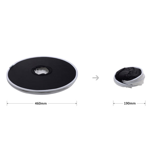 Длина 72см, диаметр 43см. В комплекте рефлектор для использования половины софтбокса и получения направленного света.